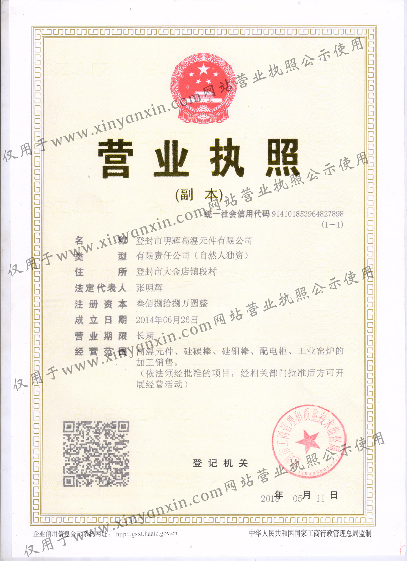 您好!歡迎光臨登封市明輝高溫元件有限公司官網(wǎng)!